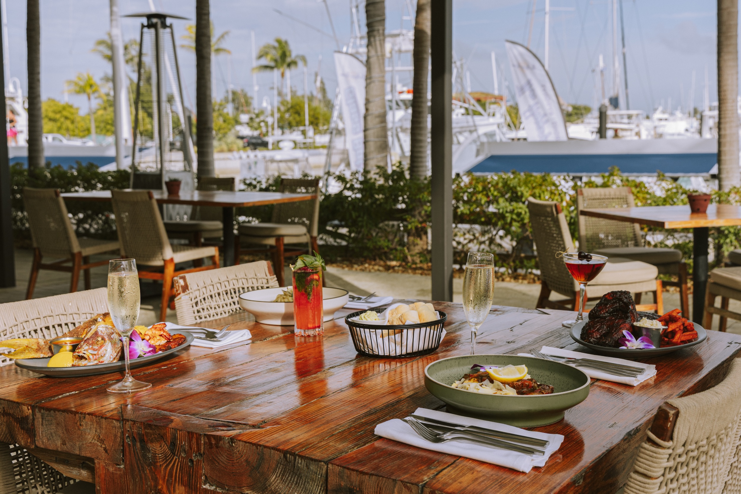 We’re located on The Perry Marina at The Perry Hotel, just next to the pool and in front of the marina.