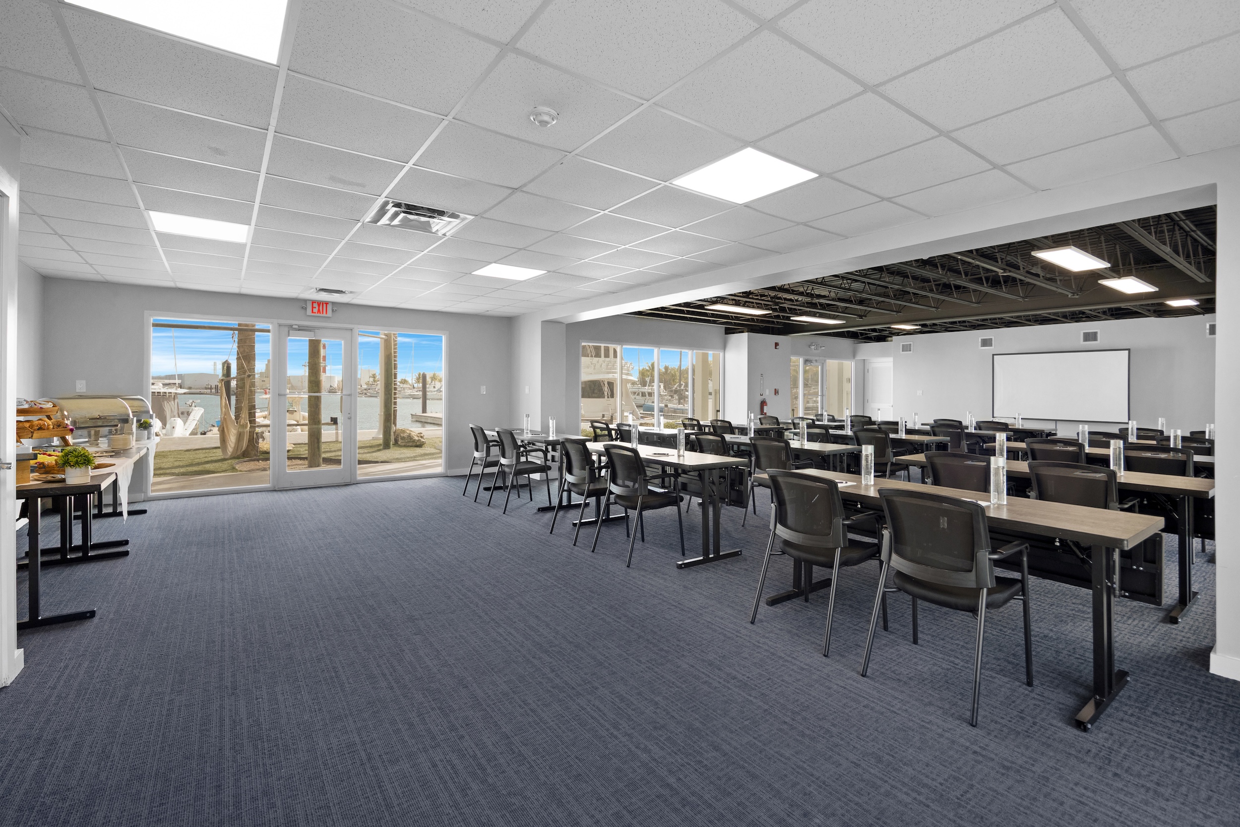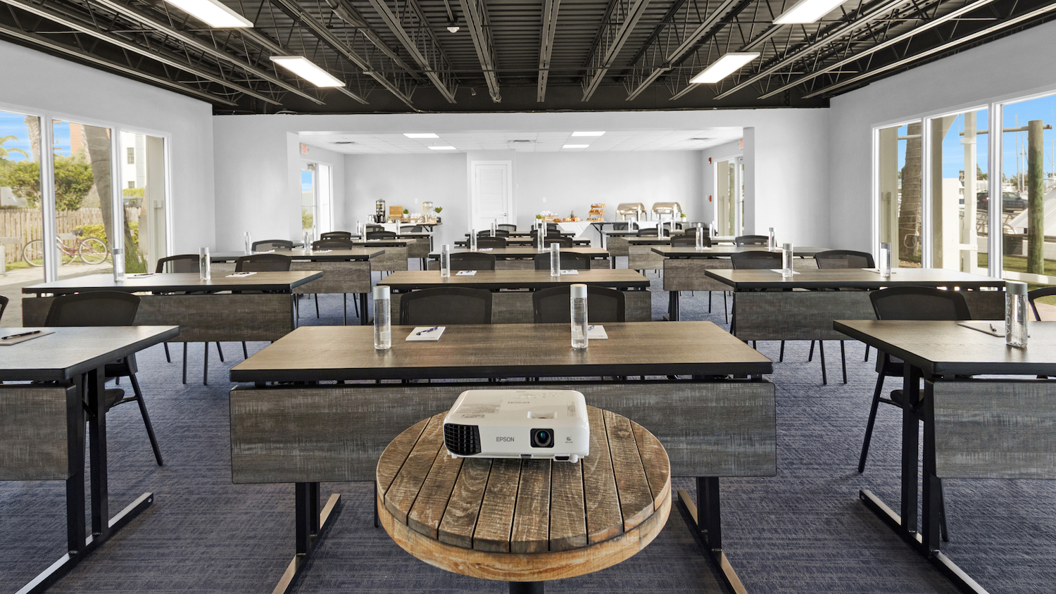 Yes, The Perry has four indoor meeting spaces. Both the Longitude Room and the Latitude Room are recommended for larger gatherings, as they can hold 100 and 75 guests, respectively, while the Sunset Lounge and the Grand Suite can be adapted for smaller indoor meetings, seating up to 12 and 20, respectively.